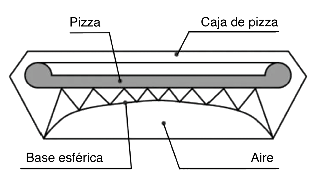 En una caja para pizza común, el alimento puede llegar frío o humedecido por el vapor cuando el cliente la recibe en su domicilio. El objetivo es diseñar una caja para pizza que permita que el cliente reciba en su domicilio una pizza caliente, fresca y seca. En este caso, se debe evitar que circule aire en el interior de la caja para que no se enfríe la pizza; pero, al mismo tiempo, se debe permitir el desalojo de vapor para evitar la humedad, por lo cual ésta es la contradicción por resolver. Para dar con la solución, los diseñadores aplican los principios 2: Extracción, 5: Combinar, 14: Curvatura, 17: Otra dimensión y 22: Convertir lo negativo en positivo, de donde se obtiene un diseño de caja como el que se muestra en la figura 3 (Ekmekci y Koksal, 2015).