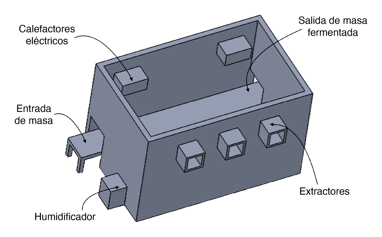 Para este ejemplo de aplicación de triz se considera una cámara de fermentación previamente diseñada (figura 4), en la que, para mantener los niveles de humedad adecuados, se utilizaron humidificadores de aire, mientras que para elevar la temperatura se propuso un sistema basado en un calefactor radiante de propano, en conjunto con un sistema de ventilación con extractores de aire para controlar los niveles de humedad y temperatura, con el propósito de mantenerlos en el rango de operación necesario.